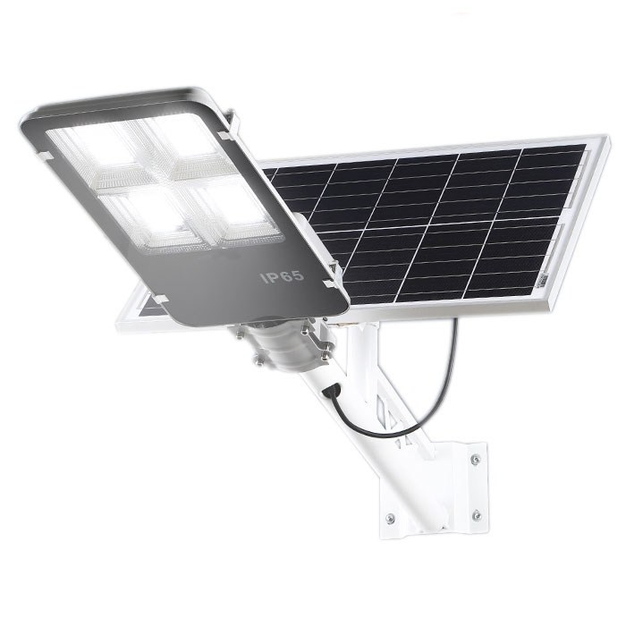 Cấu tạo: Gồm có mặt trên là tấm pin mặt trời, một hộp bên trong chứa mạch điều khiển kỹ thuật số và sử dụng pin Lithium với độ bền cao, mặt dưới là 2 bộ đèn Led. Khung đèn có thể bắt vào tường hoặc trụ tròn dễ dàng.