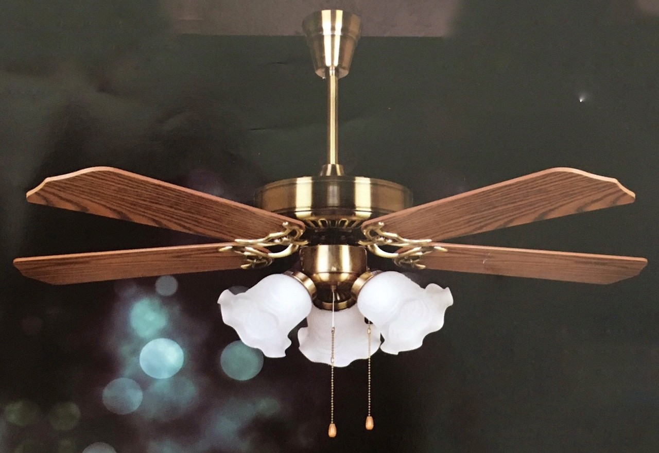 Quạt có sải cánh 110 cm, chiều cao 70 cm, 5 cánh quạt, kết hợp sử dụng 3 bóng đèn đuôi E27 với 3 choá đèn, mang đến nét thanh lịch cho không gian sống.