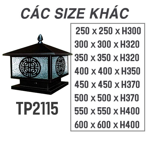Mẫu đèn trụ cổng vuông vỏ đen chất liệu hợp kim sơn tĩnh điện TP2115 / size 250 Mẫu đèn trụ cổng cao cấp hình ngôi nhà mái trơn này không chỉ dùng để chiếu sáng mà còn là để trang trí để làm đẹp thêm cho ngôi nhà của bạn, đèn thích hợp cho việc trang trí trụ cổng rào, cổng nhà,…