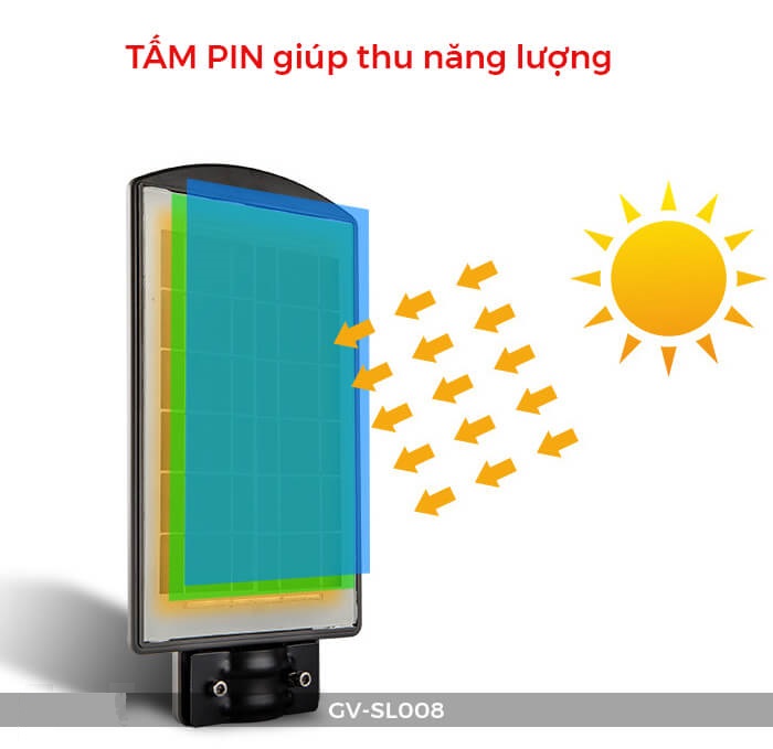 Nhờ tấm pin được làm từ chất liệu bán dẫn silicon có tỷ lệ chuyển đổi cao, nên ban ngày hấp thụ ánh nắng có thể đủ điện giúp đèn phát sáng cả đêm ( lên tới 12h ).