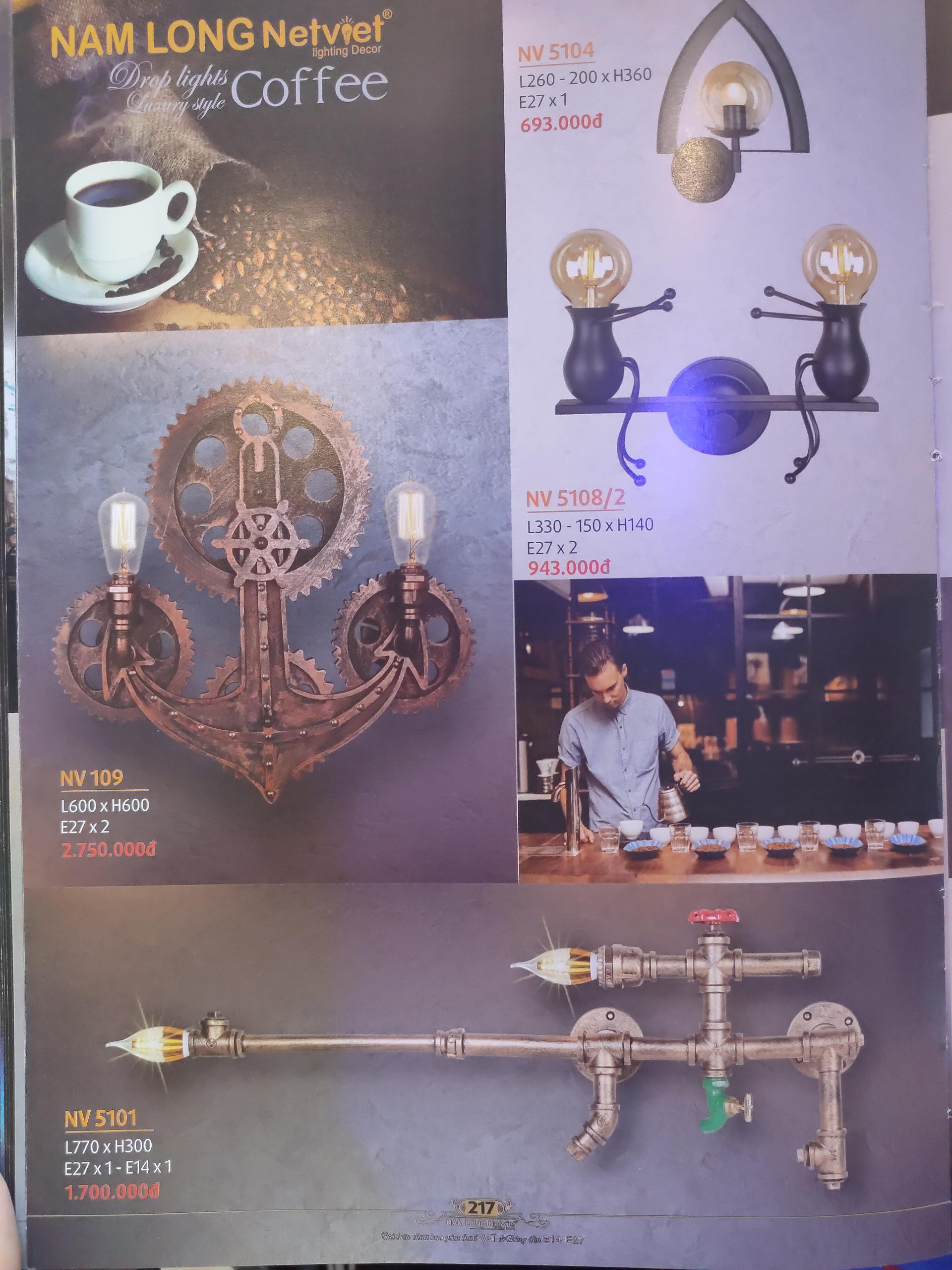 *Đèn tường ngoại thất cho quán cafe ngoài trời.