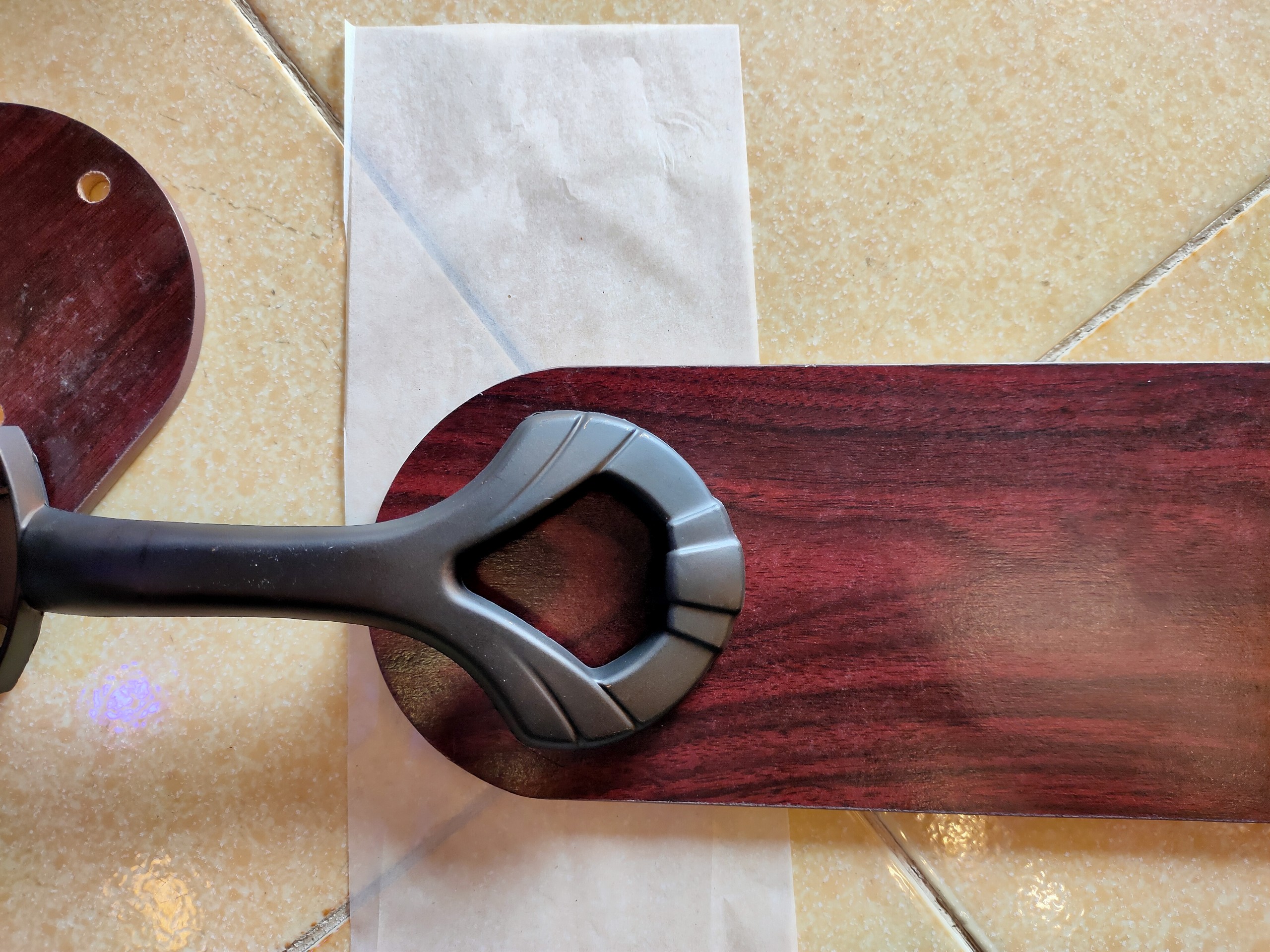 Phần cánh quạt bằng gỗ có phần cần sắt, bạn bắt cố định cánh quạt vào cần sắt