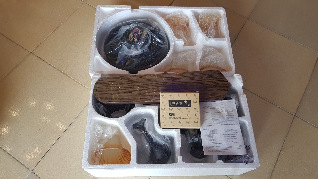 - Mở thùng đựng quạt, cẩn thận tránh làm bể chóa đèn bằng thủy tinh hoặc sứ