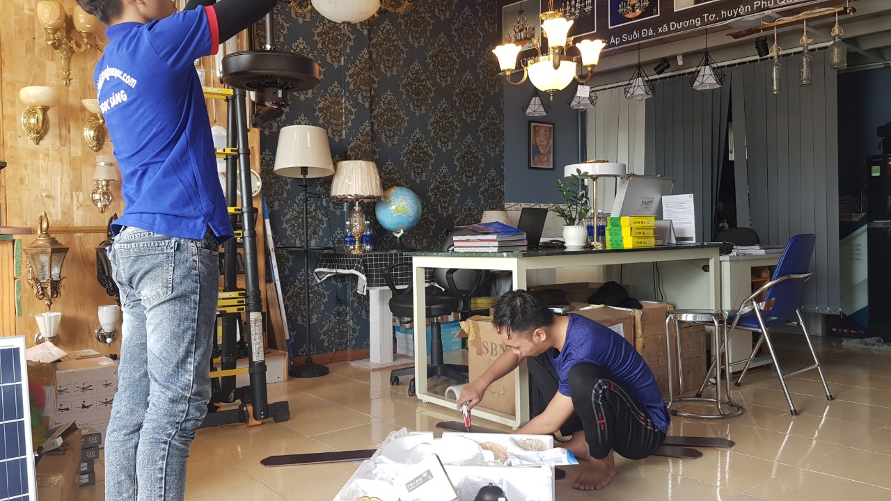 Đèn Ngọc Sáng - Lắp đặt phần moto quạt