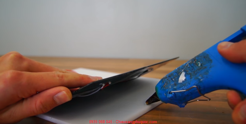 Chúng ta sẽ hàn 1 công tắc thêm chúng ta có thể dễ dàng bật hoặc tắt vào ban ngày. Và bây giờ bạn bật công tắc và đèn đã sáng. Nhiệm vụ cuối cùng là bạn gắn đèn vào vị trí cần lắp đặt. Thưởng thức thành quả của bạn.
