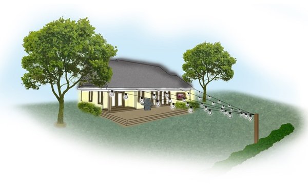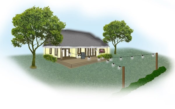 Hãy bắt đầu lắp đèn dây thả treo ngoài trời: