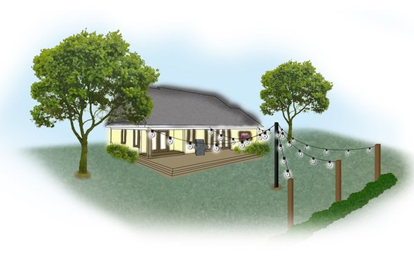 Cách lên ý tưởng và lắp đèn dây thả treo ngoài trời